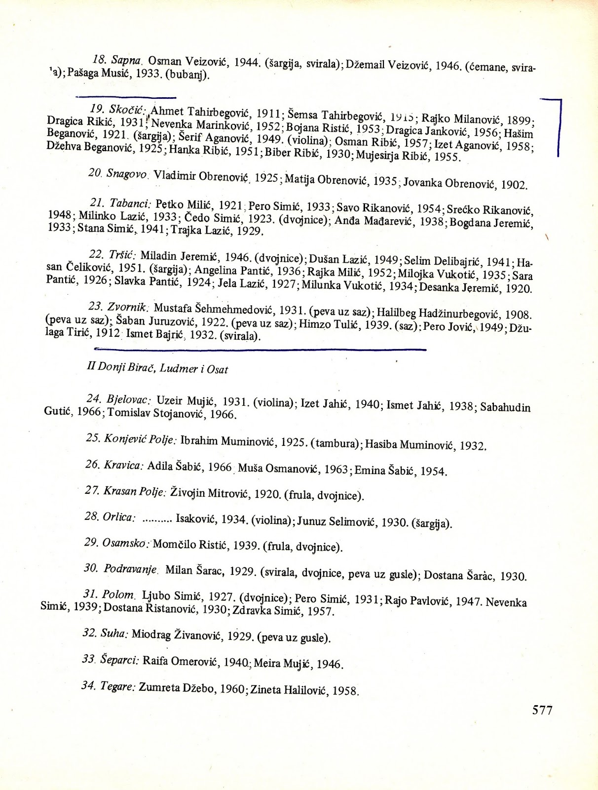 Dimitrije O. Golemović: Popis kazivača. U: "Narodna muzika Podrinja". "Drugari", Sarajevo, 1987. (VI dio)