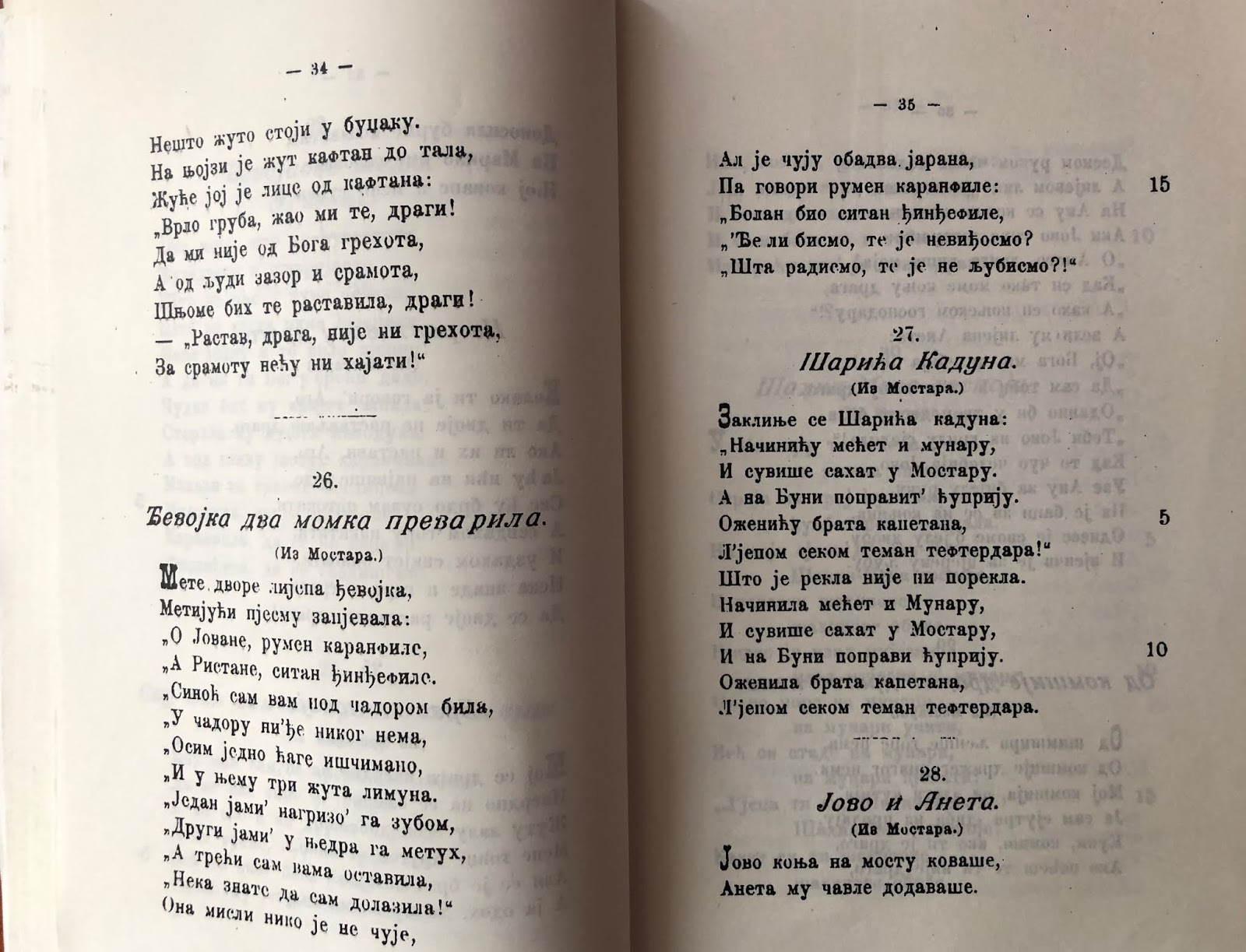 Лука Грђић-Бјелокосић: Из народа и о народу: Књига III: Смиље и босиље. Из српског народног врта убрао га... Нови Сад: Штампарија Ђорћа Ивковића, 1898. (III дио)